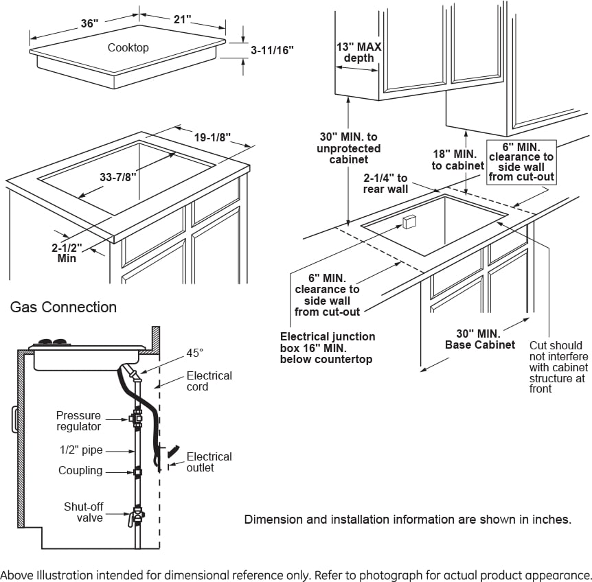 Cutout: 33-7/8″ W × 19-1/8″ D